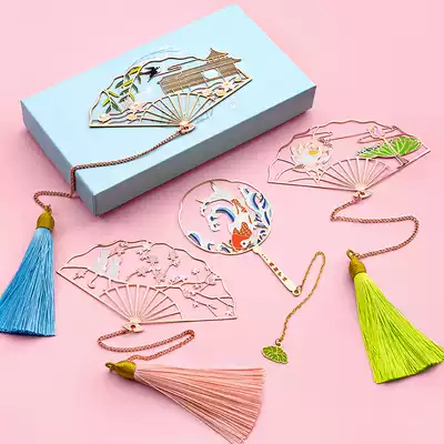 Classical bookmarks Chinese style antiquity students use metal creative hollow gifts small gifts brass koi panda Nine-Tailed Fox gift box high-end exquisite set of boys version national style