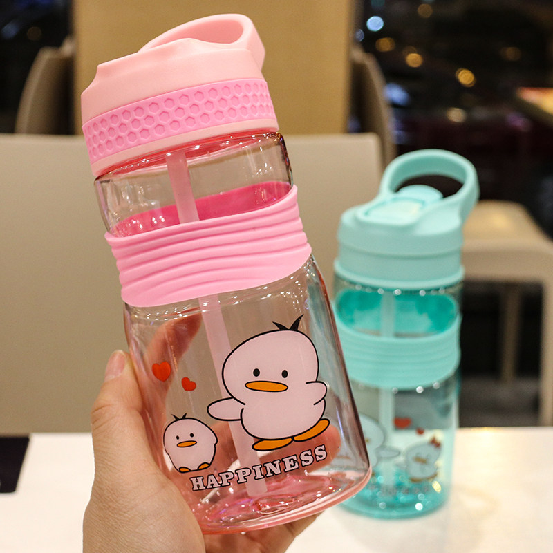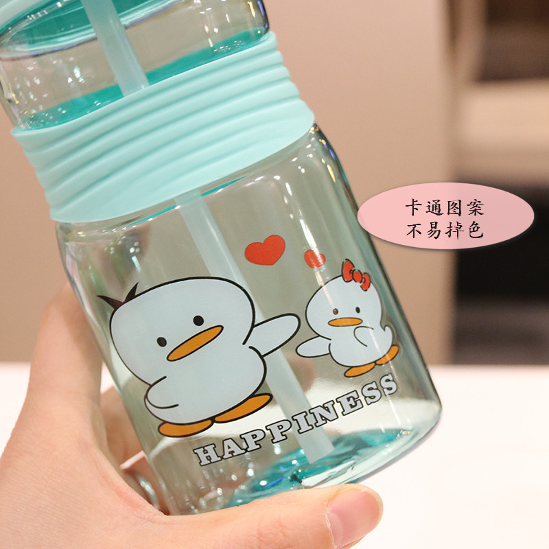 Large Capacity Adult Straw Cup Cartoon Children Water Cup Anti-Fall Pupil Cute Portable Plastic Water Mug Leak