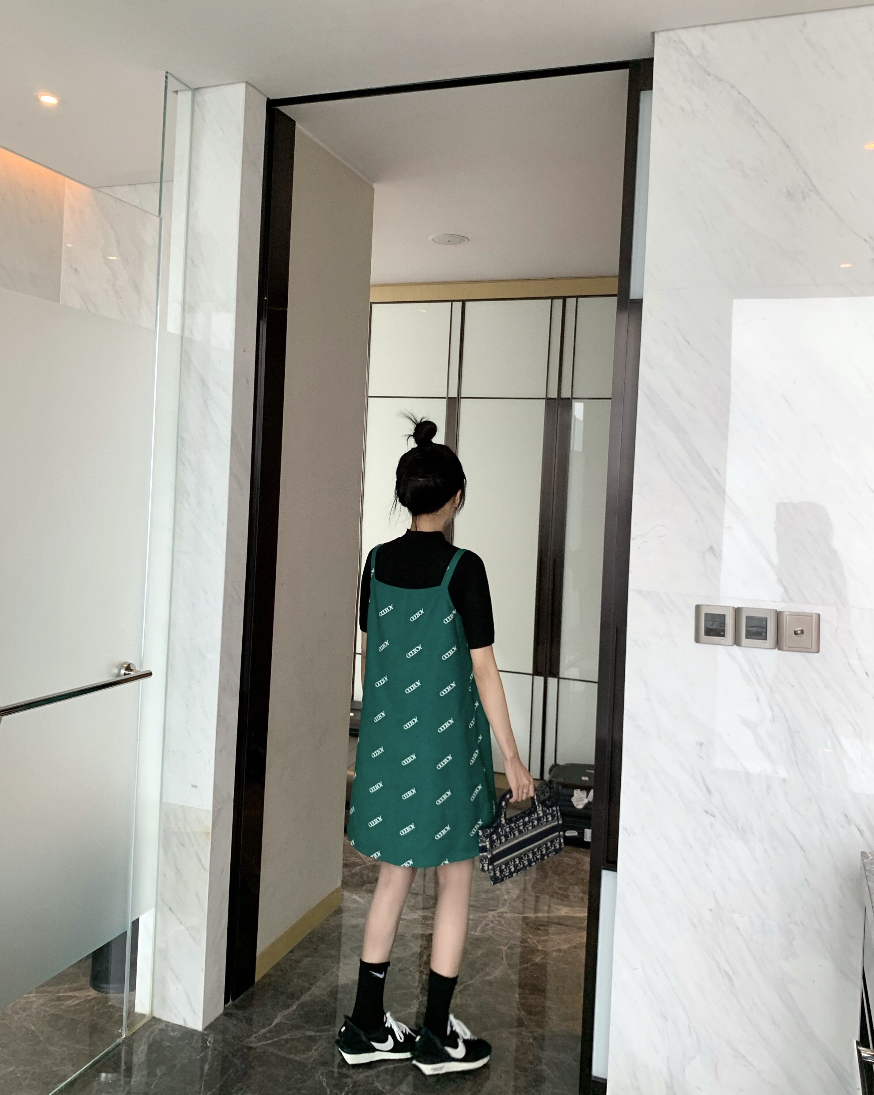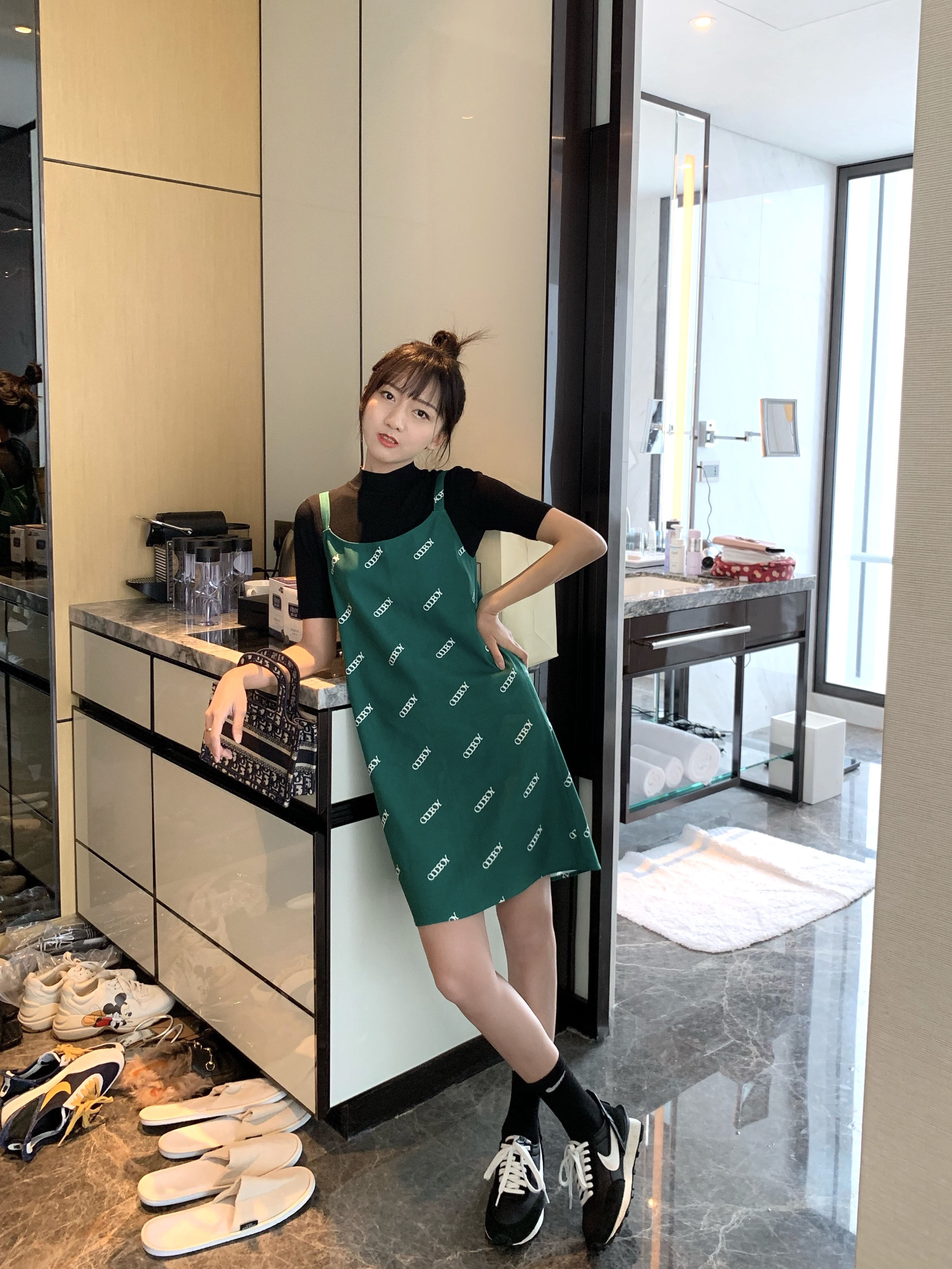 green skirt green suspender skirt
