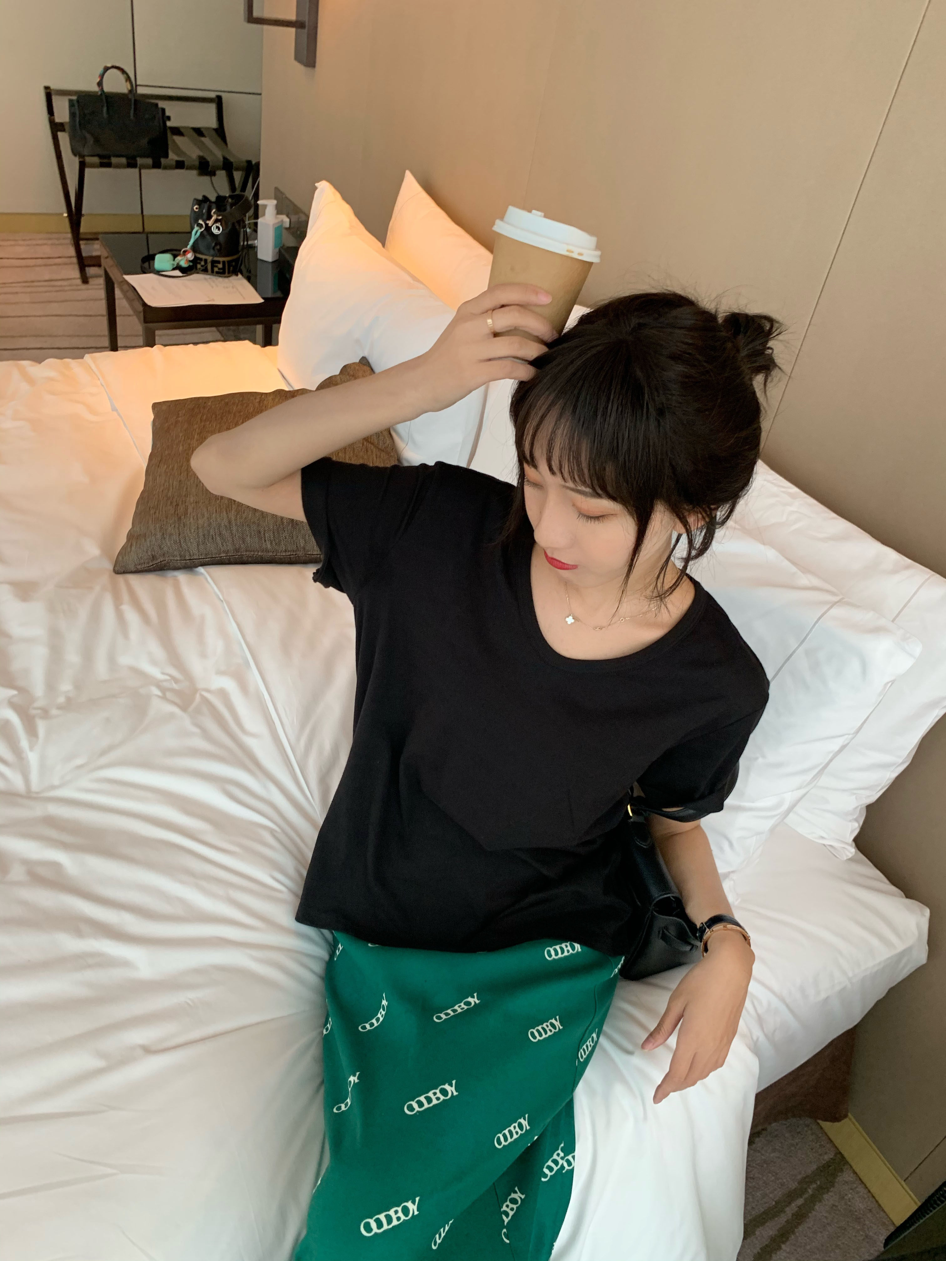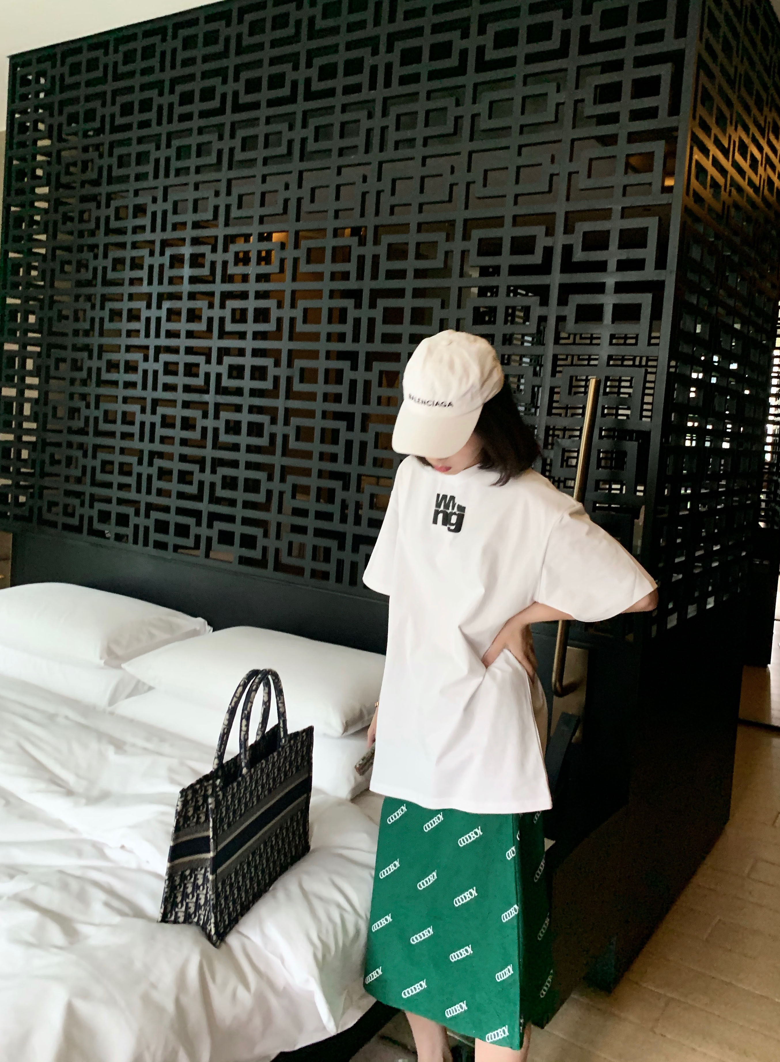 Green letter printing skirt women's mid-length drape comfortable high waist slimming hip-covering one-step skirt summer new