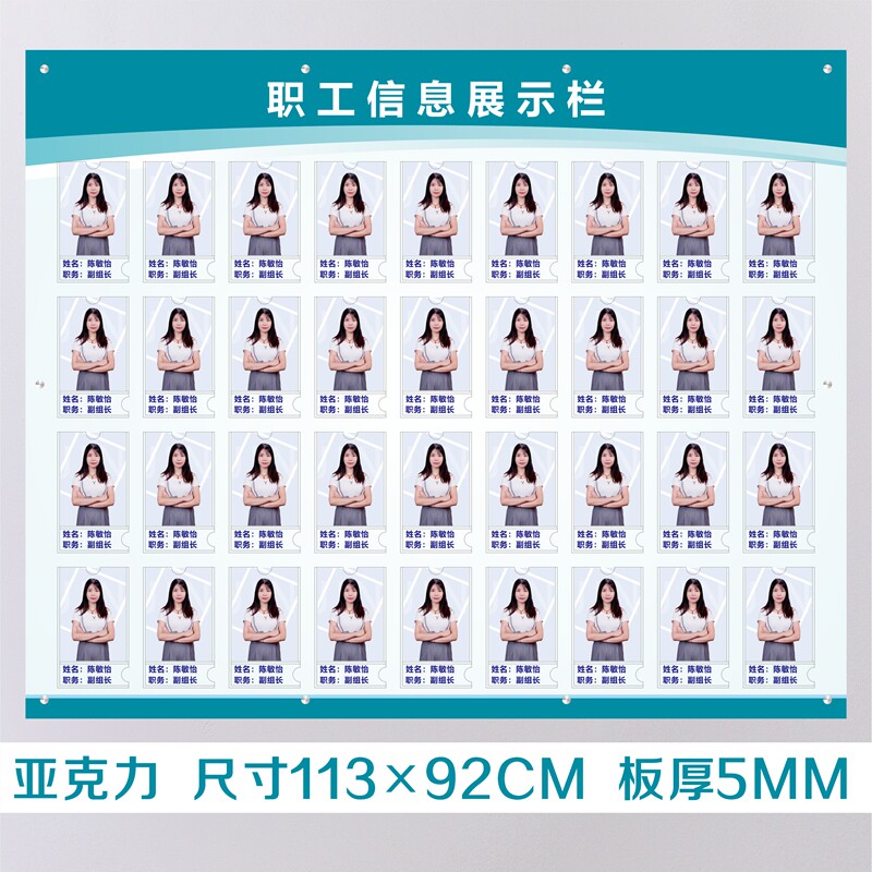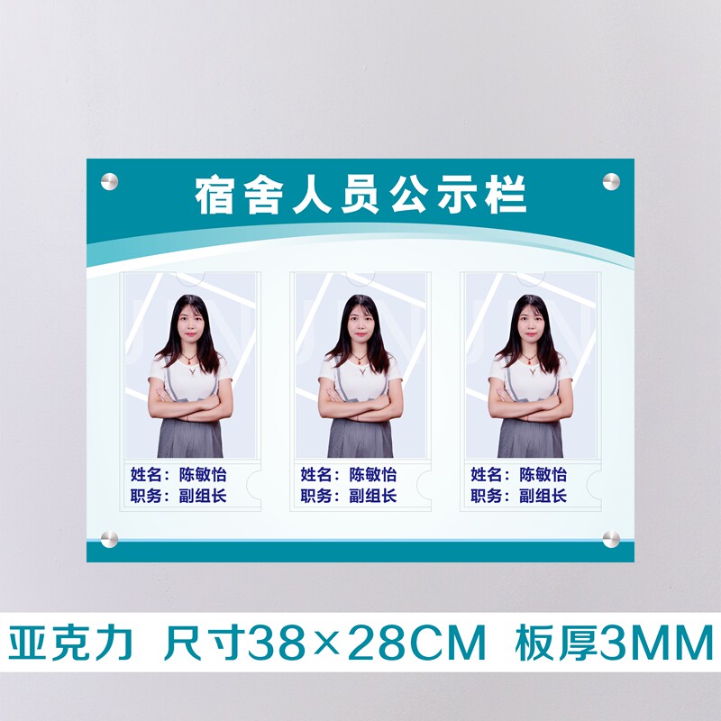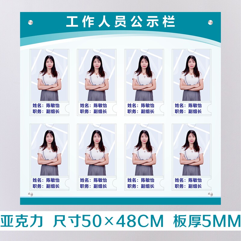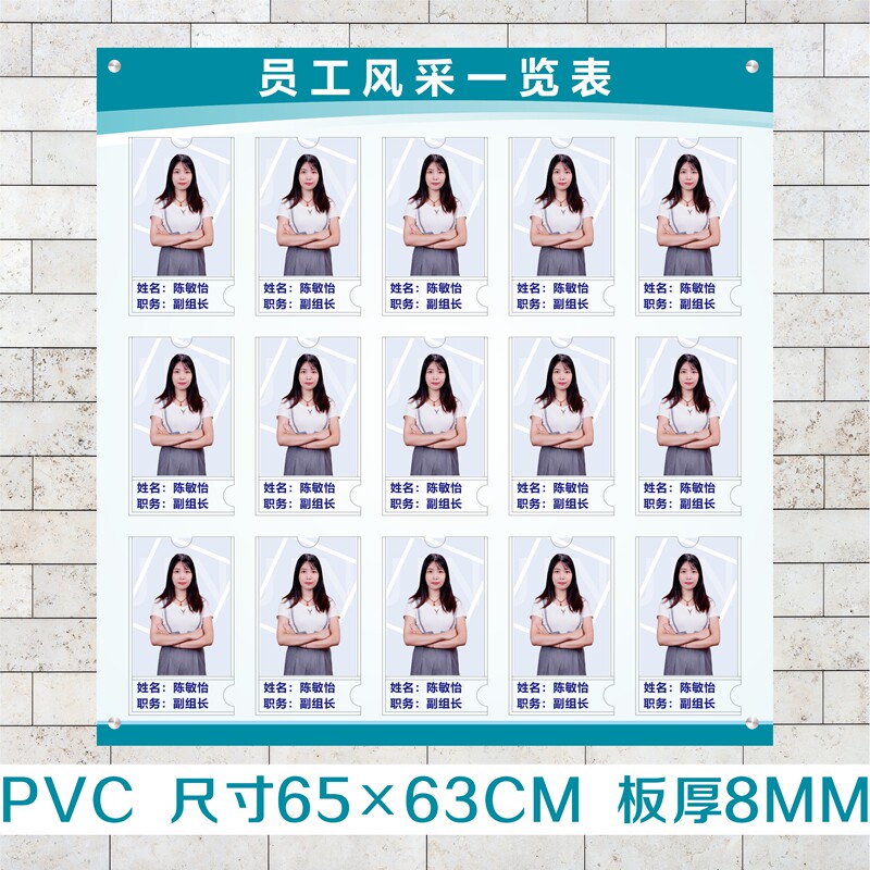 Acrylic wall hanging photo display column post bulletin board duty staff image profile wall information column list