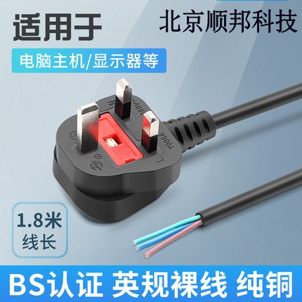English Power Cord 3X0 75 square BS certified English plug bare line tail Hong Kong British plug 1 8m