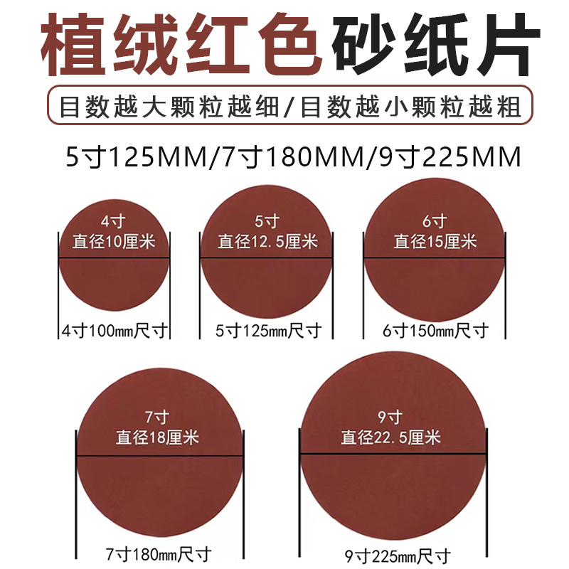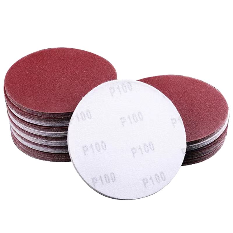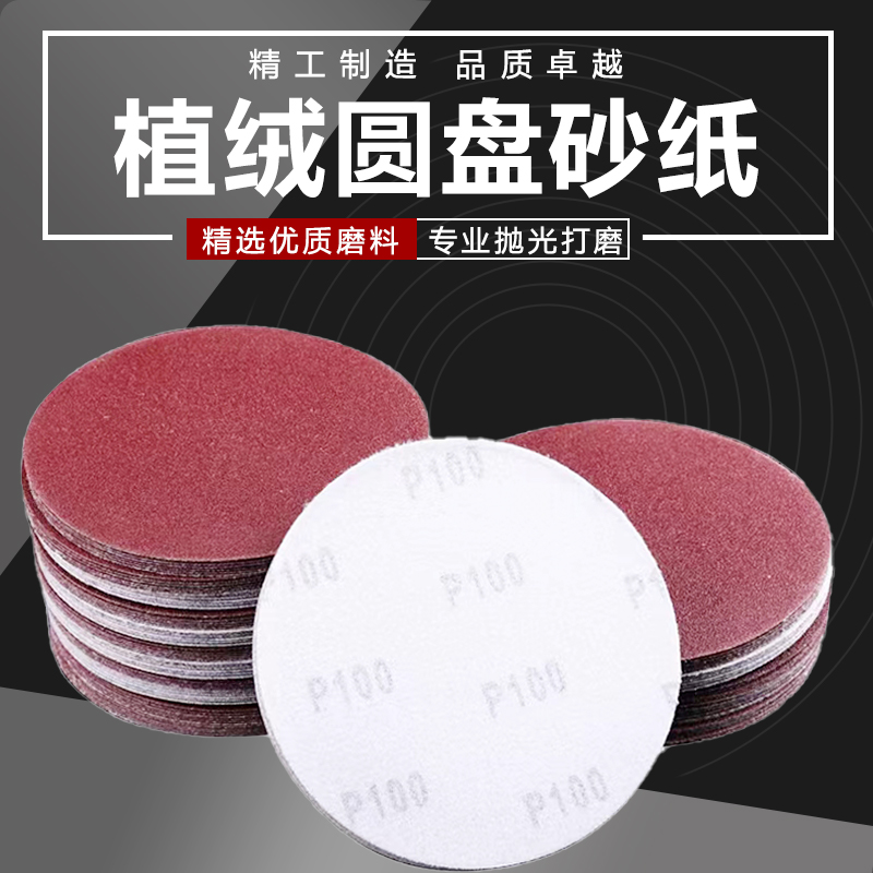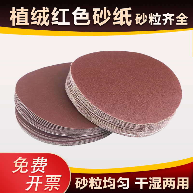 Manufacturer direct Feng Mans 5 inch sand paper sheet flocking sandpaper sheet 125mm Self-adhesive red sand round grinding sheet