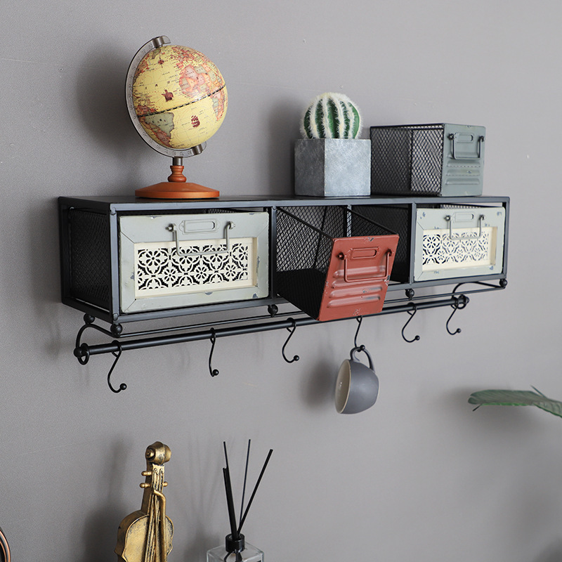 loft American retro iron art multifunctional wall shelf Hyun Guan Creative Wall-mounted Drawer Wall Shelf Storage