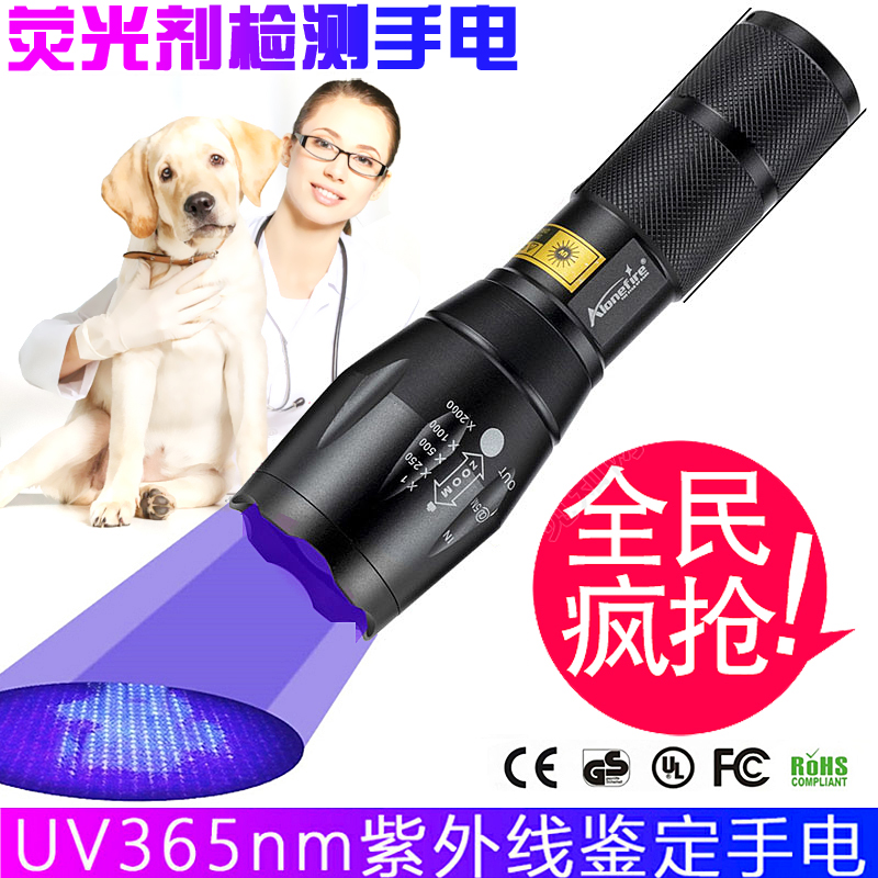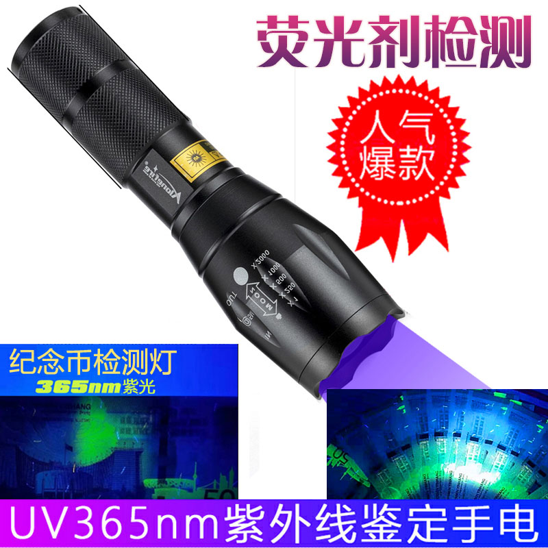 365UV photo-free adhesive cured lamp fluorescent 395nm ultraviolet fluorescent agent commemorative banknote detection Purple Light Flashlight