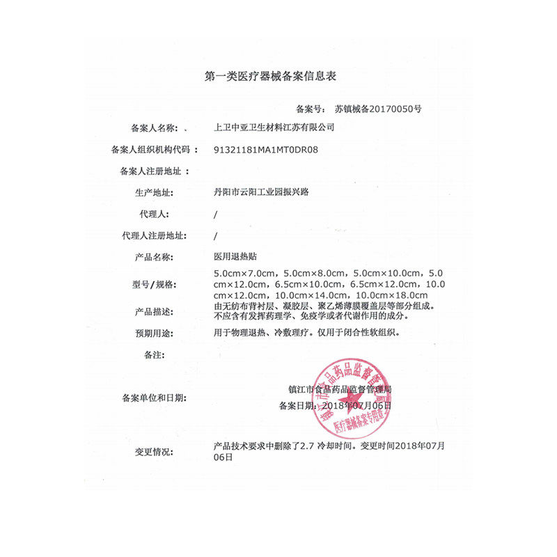 medical antipyretic patch
