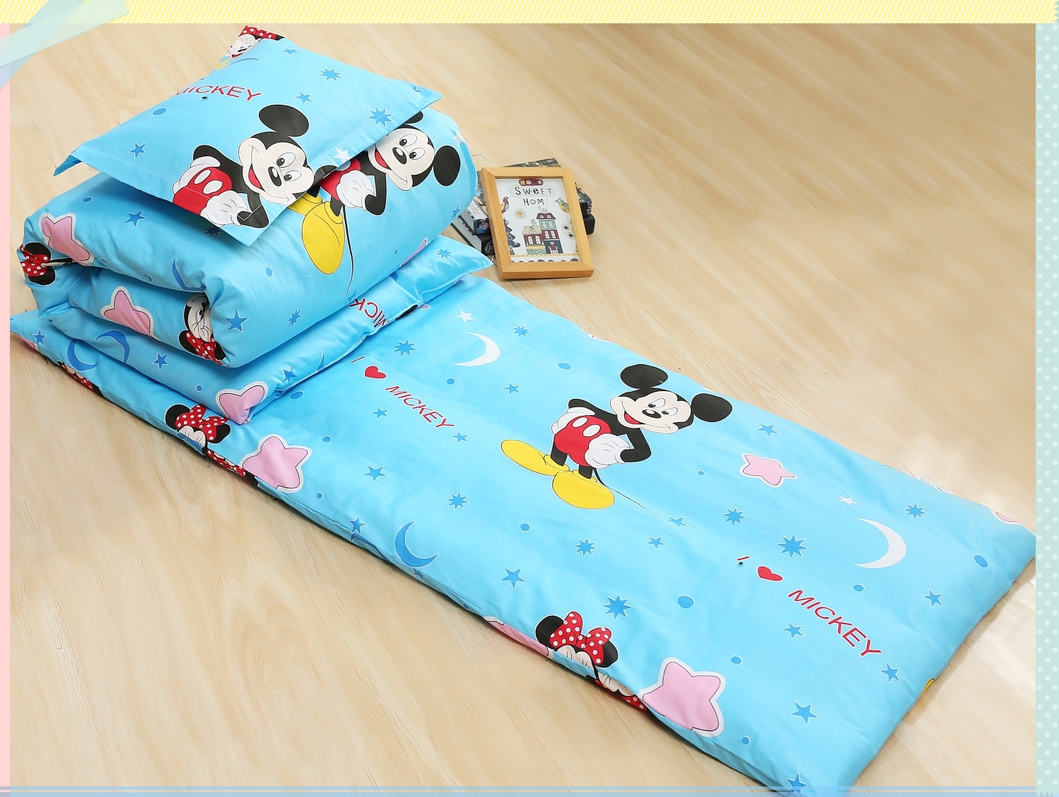 Pink Mitch three sets of pink Mickey Six sets blue Mickey Six sets Starmoon Mic blue Three sets Starmoon Mickey Blue Six pieces of pure cotton quilt cover 2 catties quilt core single quilt cover