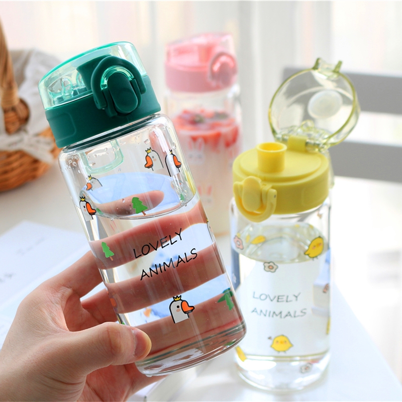 Korean Cute Cartoon Glass Cup Schoolgirl Fresh Super Cute portable minimalist creative children's water cup straight drinking cup