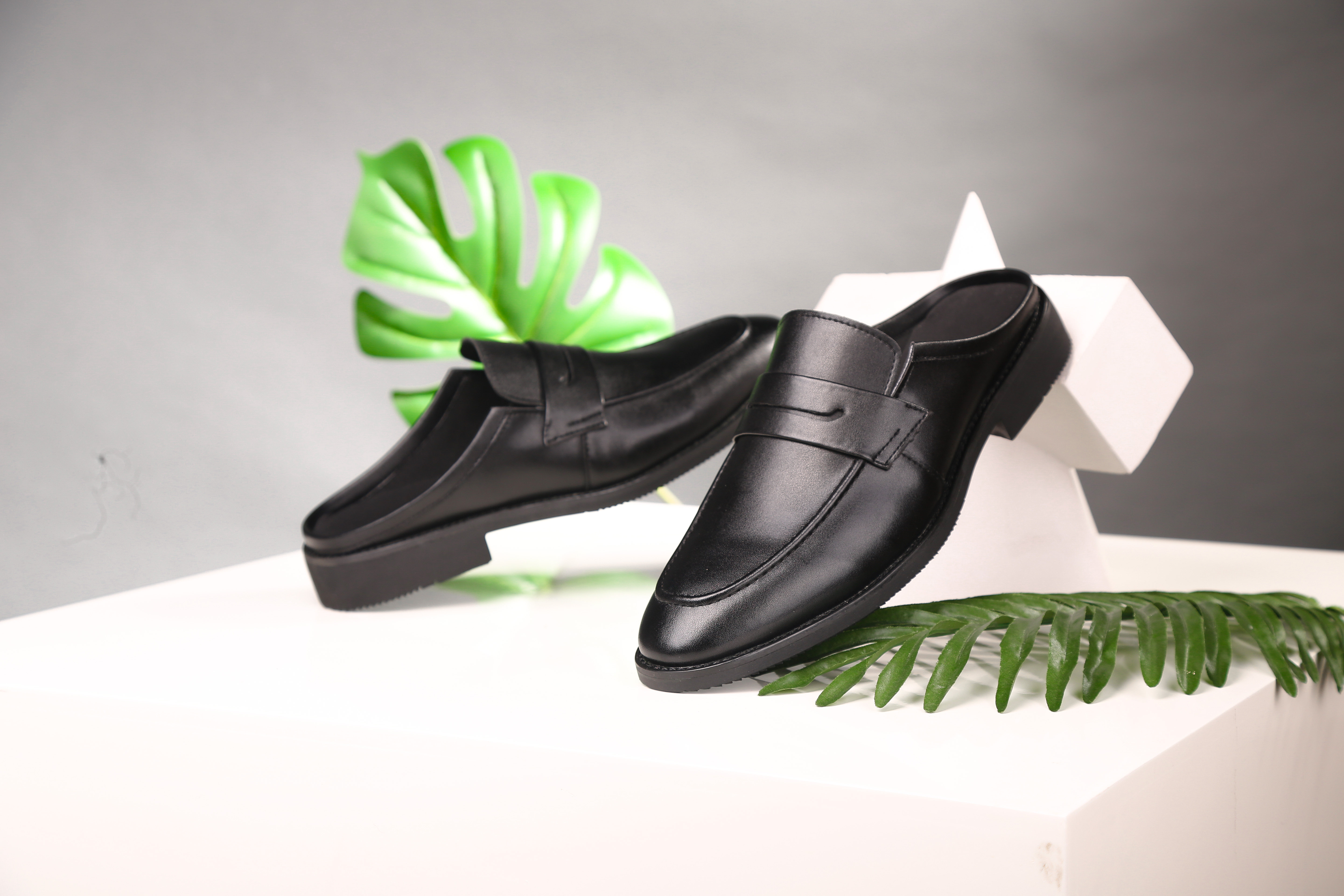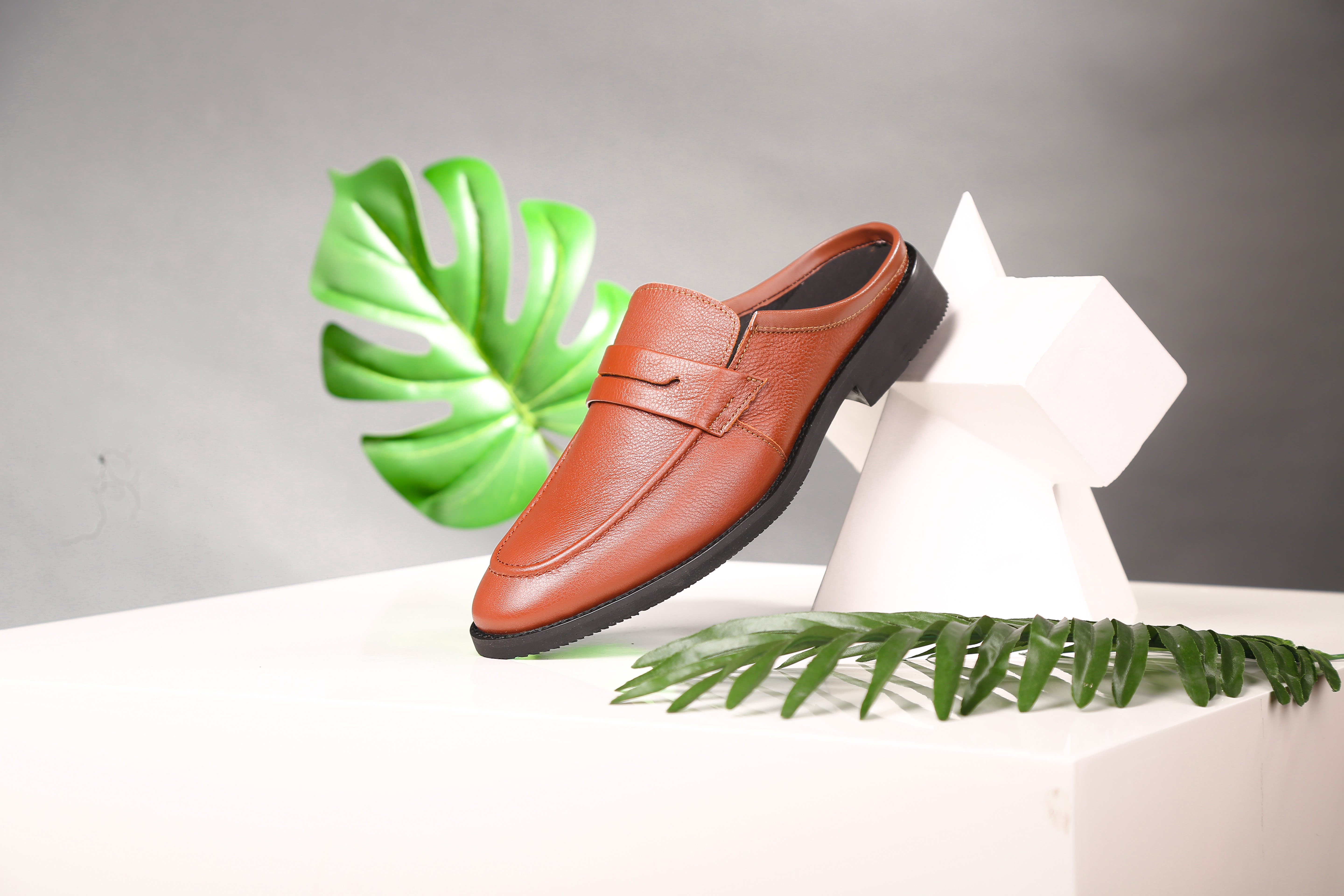 New leather man slippers home breathable comfortable packaging male leather shoes test room photo building