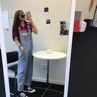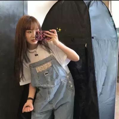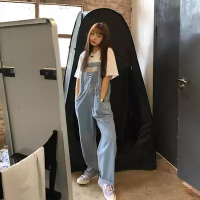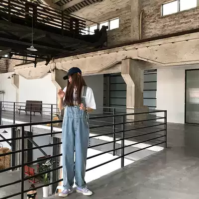 Wang girl's shop denim baby bag pants spring and autumn new Korean loose straight tube age-reducing net red wide-legged pants