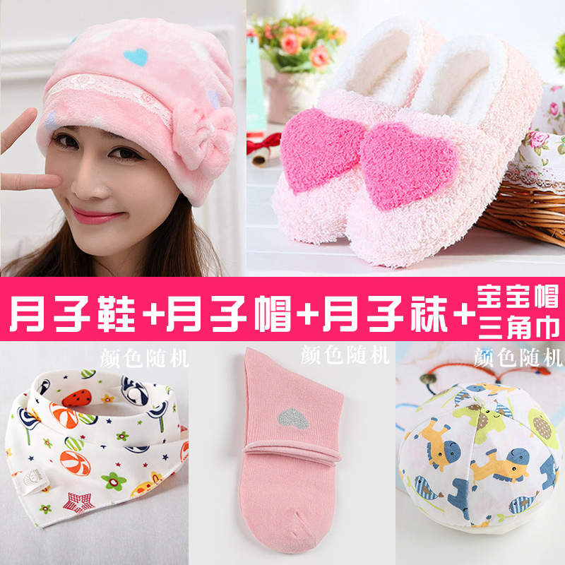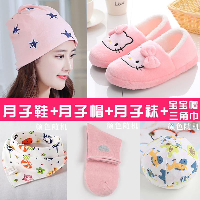 Autumn Winter Lunar Subhat Moon Shoes Warm Hat Socks Woman Spring Summer Fall Postnatal Maternal Hat Breathable Pure Cotton Fashion