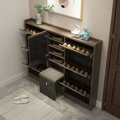 Entering shoe cabinet is integrated against the wall, household door ultra-thin shoe cabinet, solid wood narrow bucket Hall, shoe stool, light luxury porch cabinet