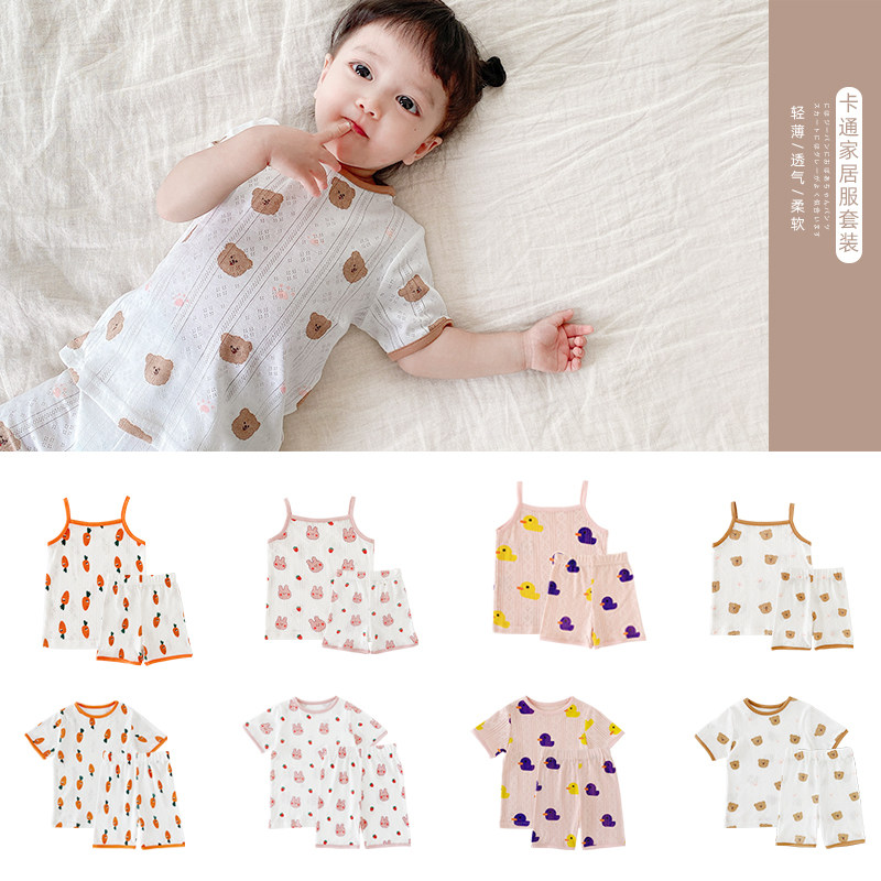 Youyou children's summer dress new Western style baby girl short-sleeved shorts two-piece home service camisole suit tide