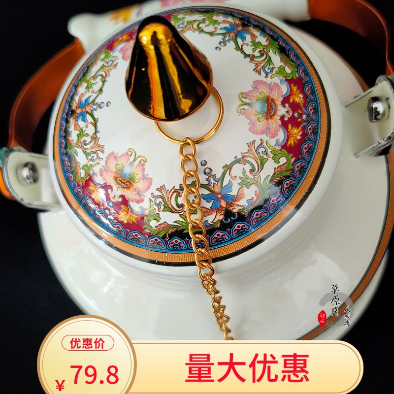 Mongolian specialty milk teapot Tibetan national wind ghee tea white enamel kettle meal