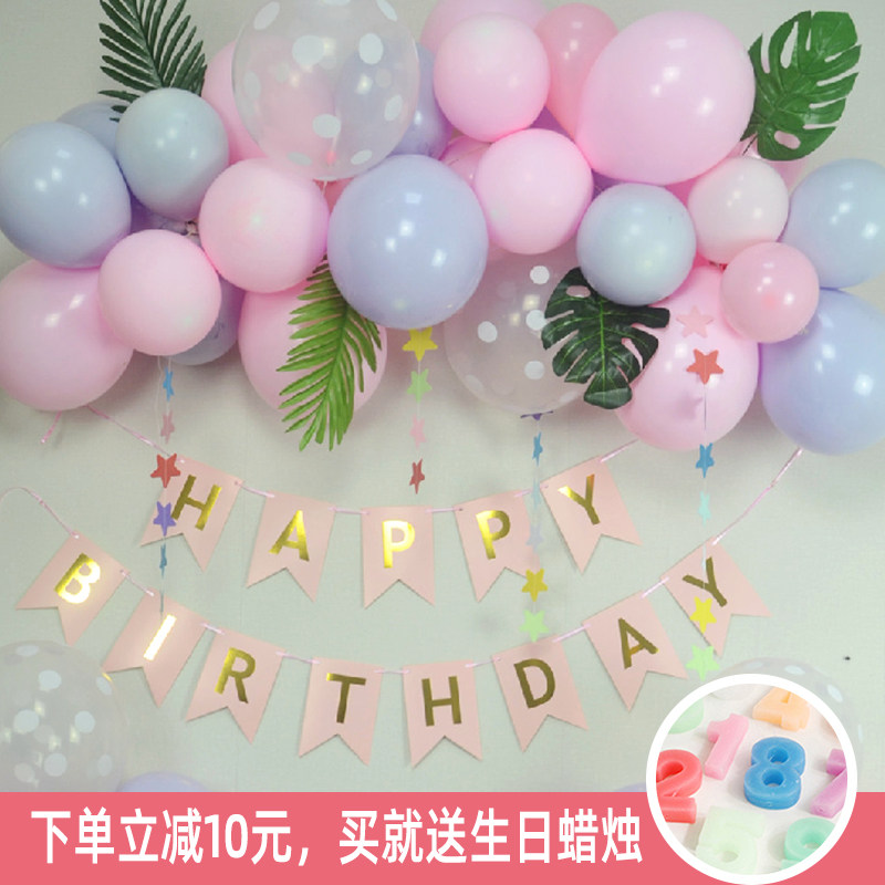 Children's birthday arrangement decoration female pink dream simple theme arrangement background wall Shenzhen living room balloon package