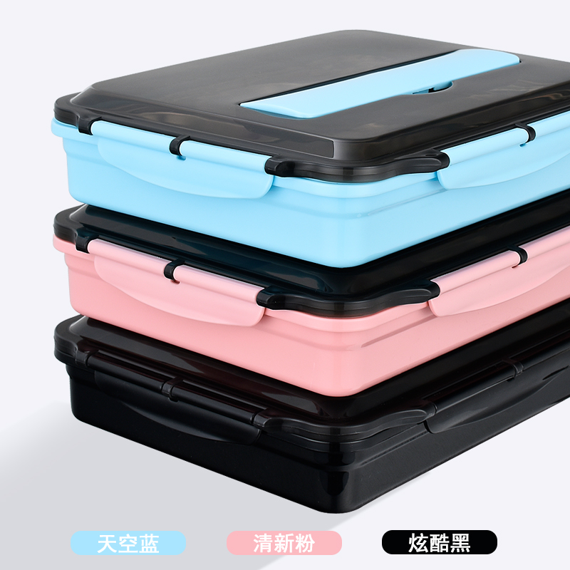 Four grids (small) blue chopsticks spoon four grids (large) blue chopsticks spoon four grids (large) pink chopsticks spoon five grids (large) blue chopsticks spoon soup bowl five grids (large) pink chopsticks
