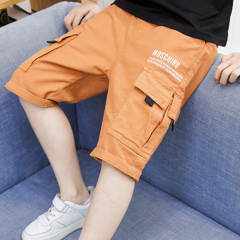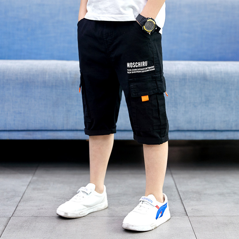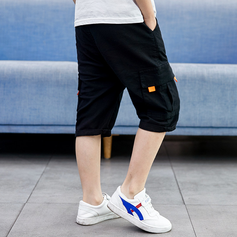 Boy Pure Cotton Polo Style Fashion Tooling 50% Pants Summer Thin CUHK Tong Han Edition Seven Pants Summer Clothing Pants Hot Pants