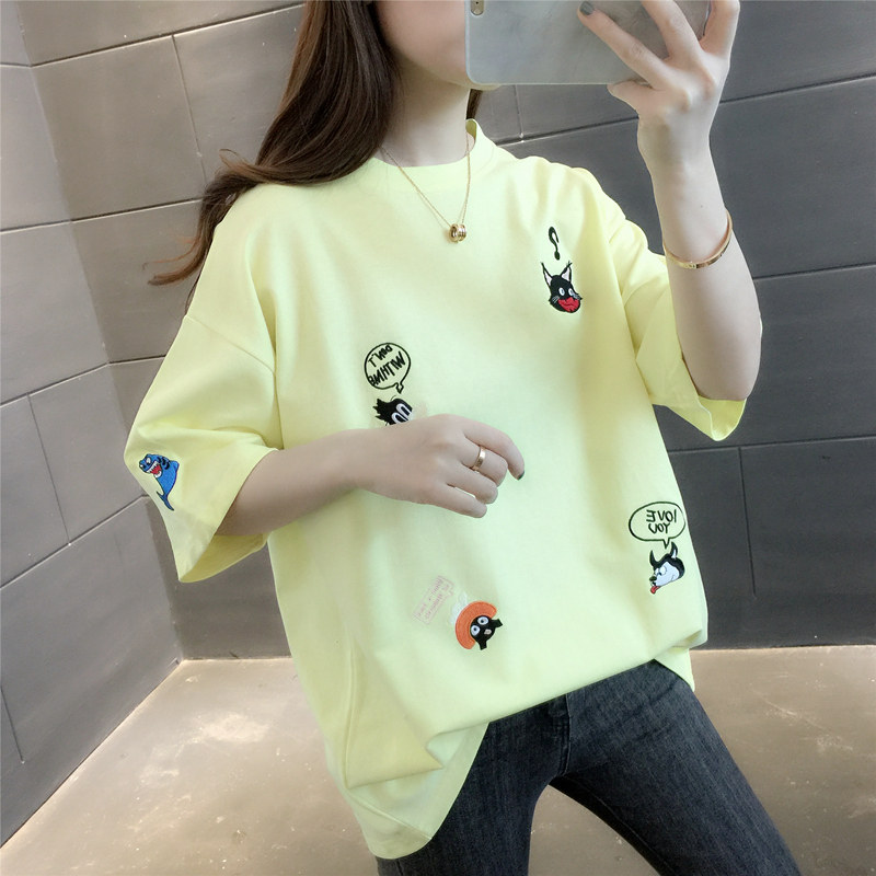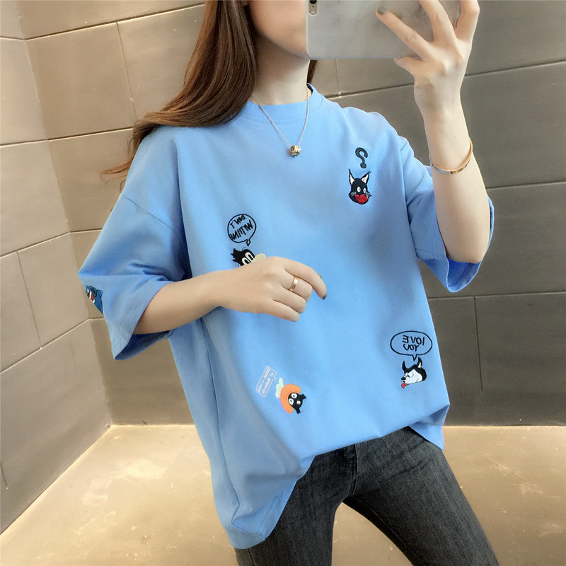 South Korea 2020 Summer new short sleeve T-shirt Women in Korean version Loose Inner Hitch Undershirt Cartoon Printed Blouses