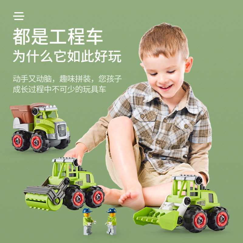 Children's disassembly and assembly engineering vehicle educational assembly toy screw-screwing tool disassembly farmer car assembly tractor boy