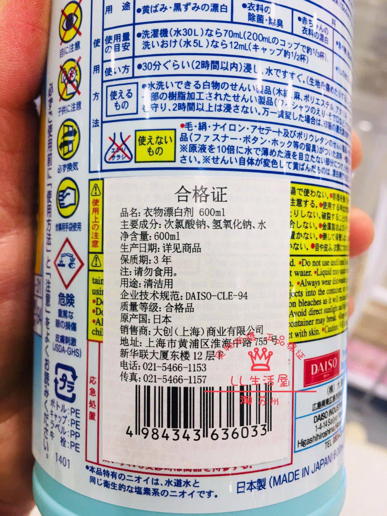 Japan's Daiso Daiso 84 disinfectant sterilization household white clothing bleach whitening and cleaning stains Japan