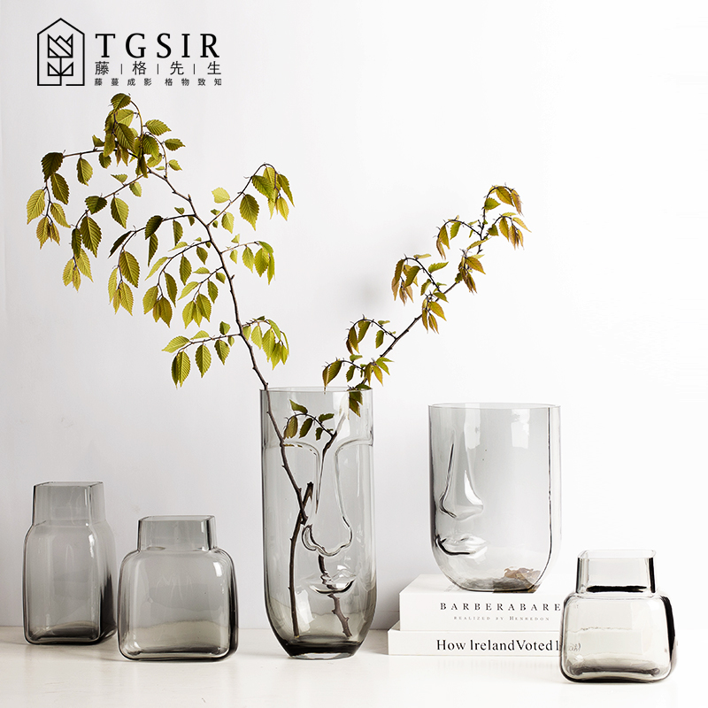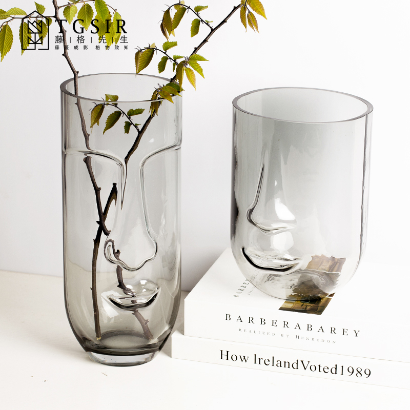 Day-Style Creative People Face Transparent Glass Vases Living Room Table Face Flowers Water Peels Floral Floral Ware Soft Decorations Hem