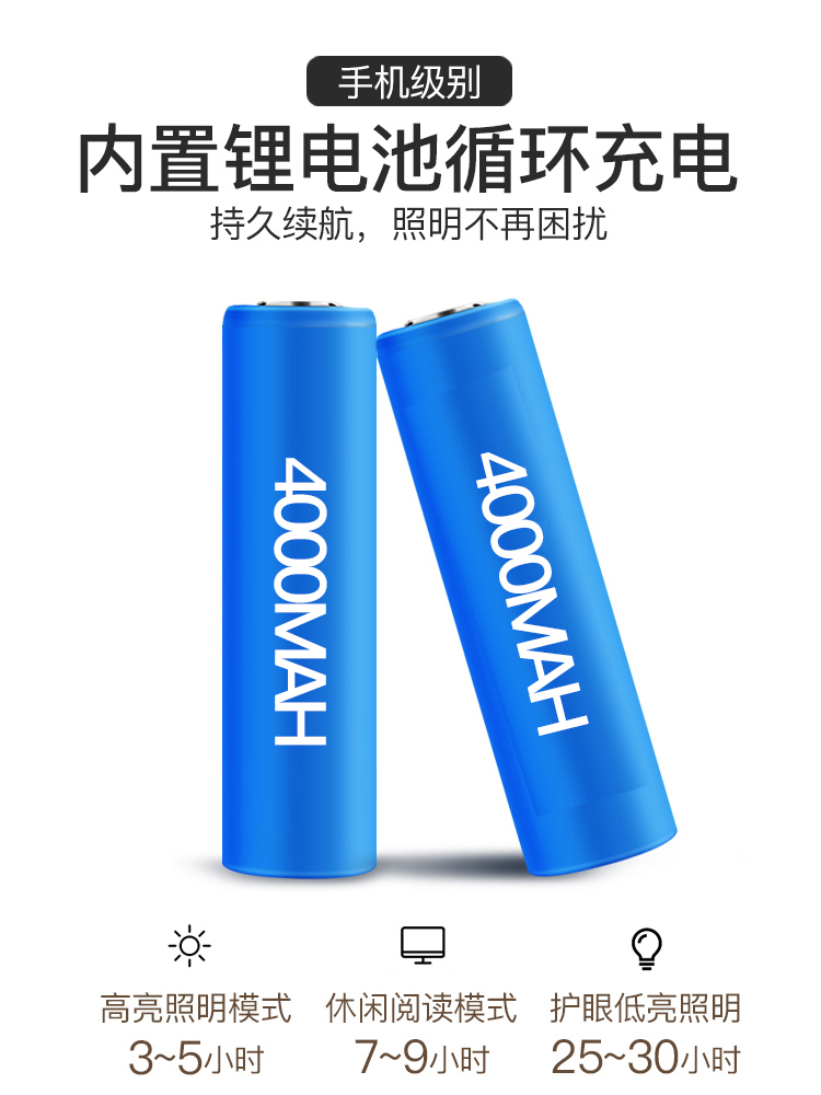 Eye protection charging model (4000 mAh)color dimming send power cord charging head