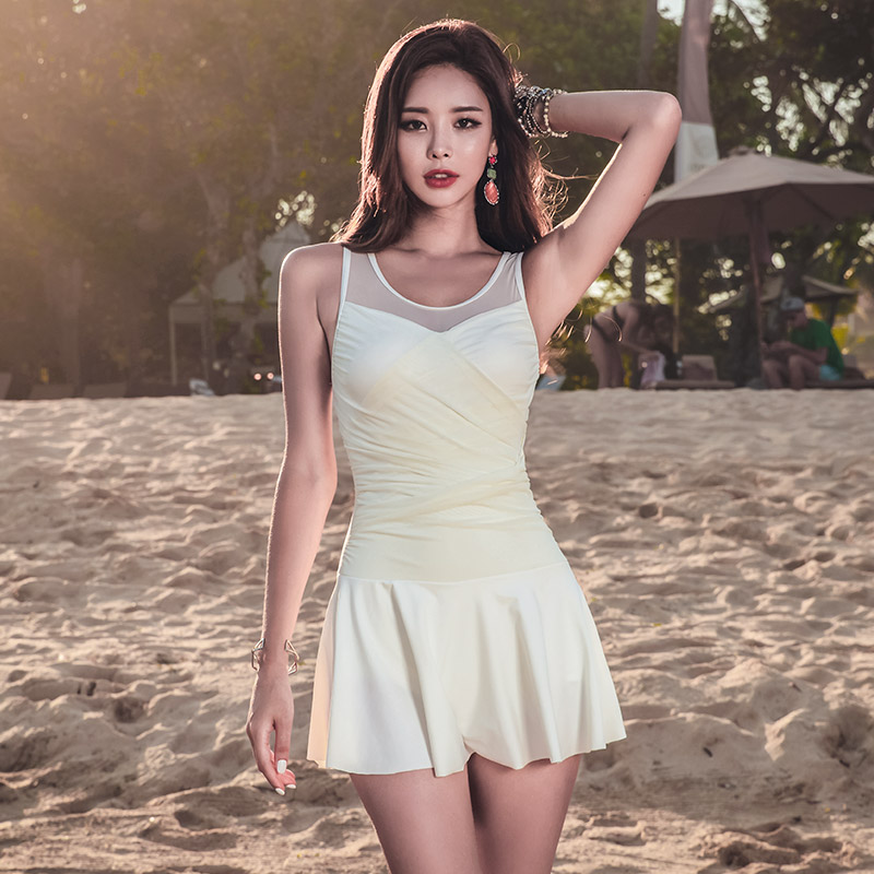 DK swimsuit women's 2021 new small chest gathered sexy one-piece skirt conservative cover belly show thin bathing hot spring swimming suit