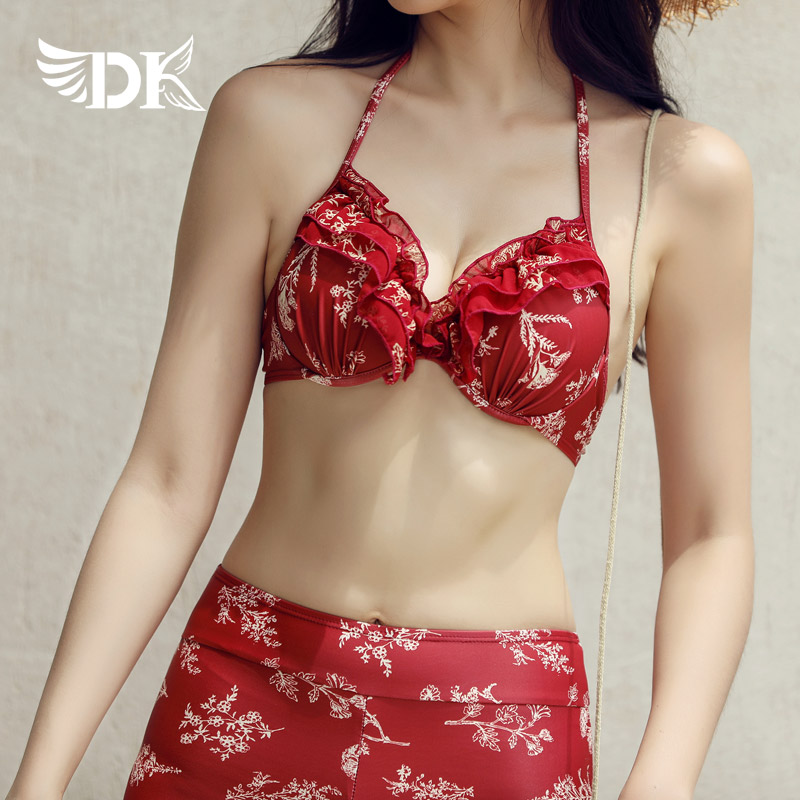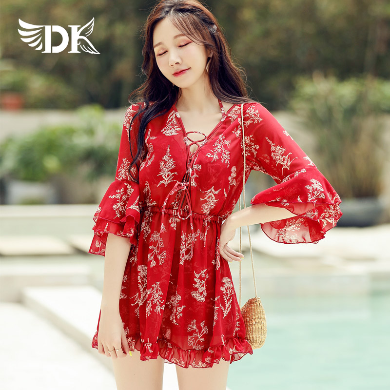DK swimsuit women 2021 new bikini three-piece hot spring Conservative belly thin fairy fan lovers swimwear