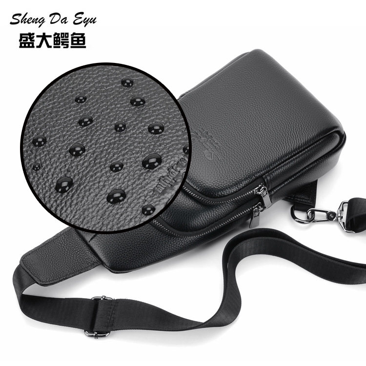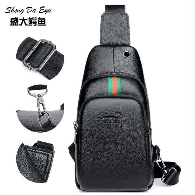 2021 New Genuine Leather Men's Chest Bag Head Layer Cowhide Shoulder Messenger Bag Soft Leather Small Backpack Men's Trendy Bag