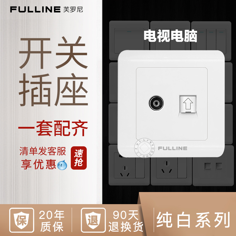 TV computer socket switch network cable cable TV network panel CCTV TV socket G12 white