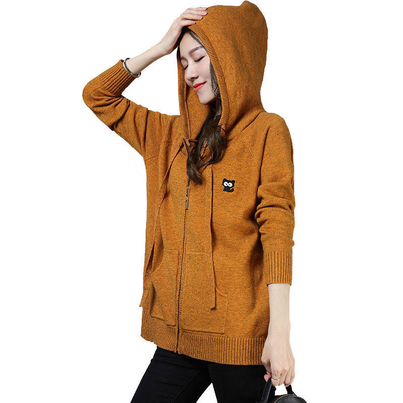 2020 early spring new plus fat plus size fat mm knitted cardigan women's short fashion hooded sweater jacket