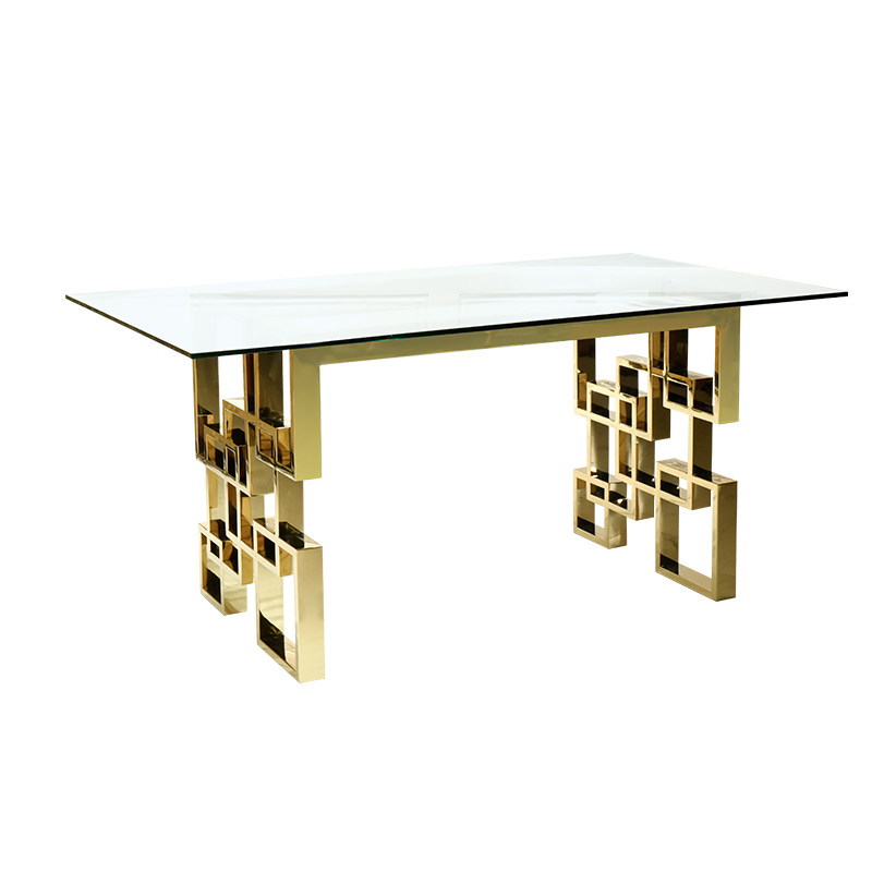 Light Extravagant Tempered Glass Table Rectangular Modern Minima Home small family Type Stainless Steel Table Bench plate Room