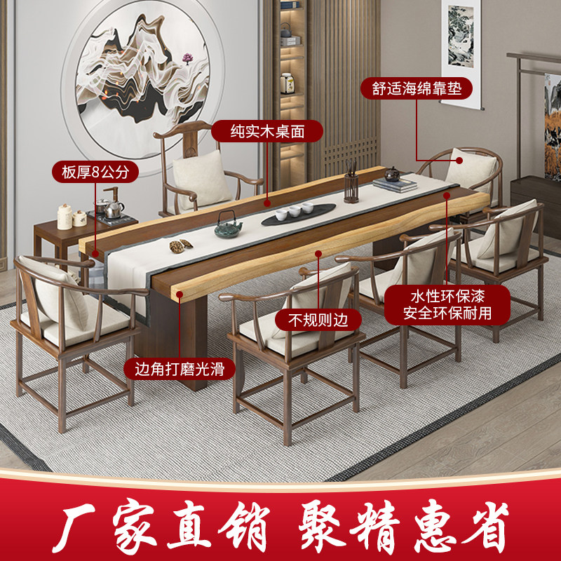 Tea table Solid wood tea table Large board Modern simple new Chinese Kung fu Zen household one-piece tea table Tea table and chair combination