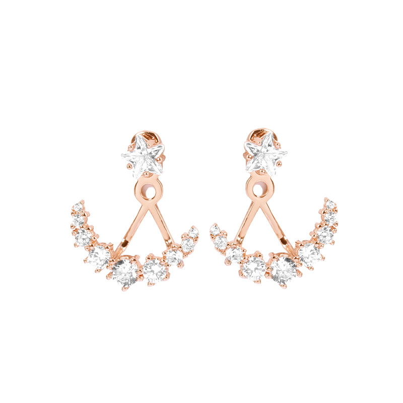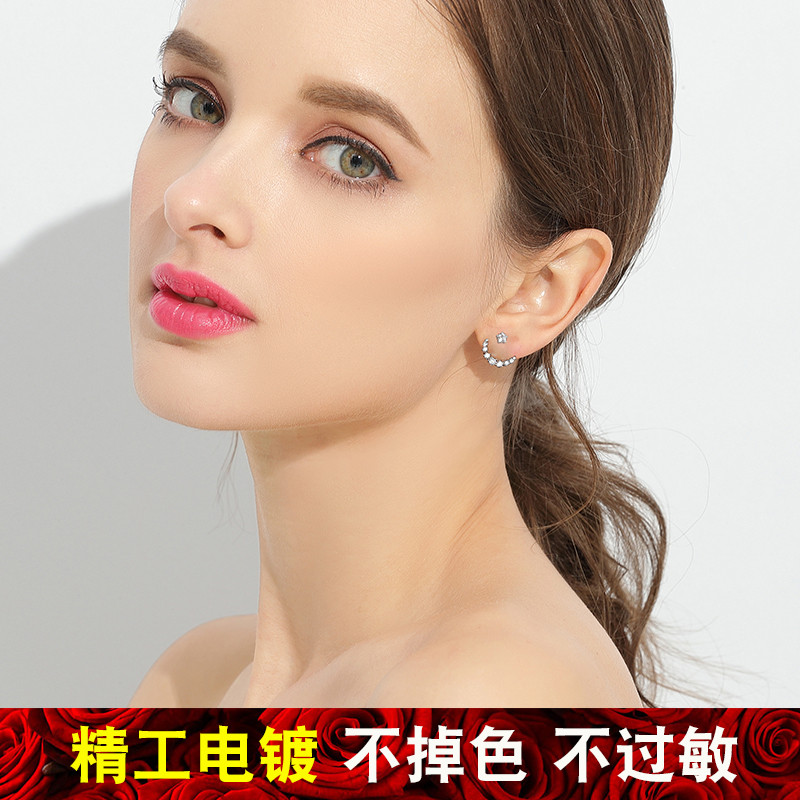Love's forced landing Sun art treasures with earrings female pure silver Yin Shilly stars Moon Stars Moon with Arc Rear Ear Pendant