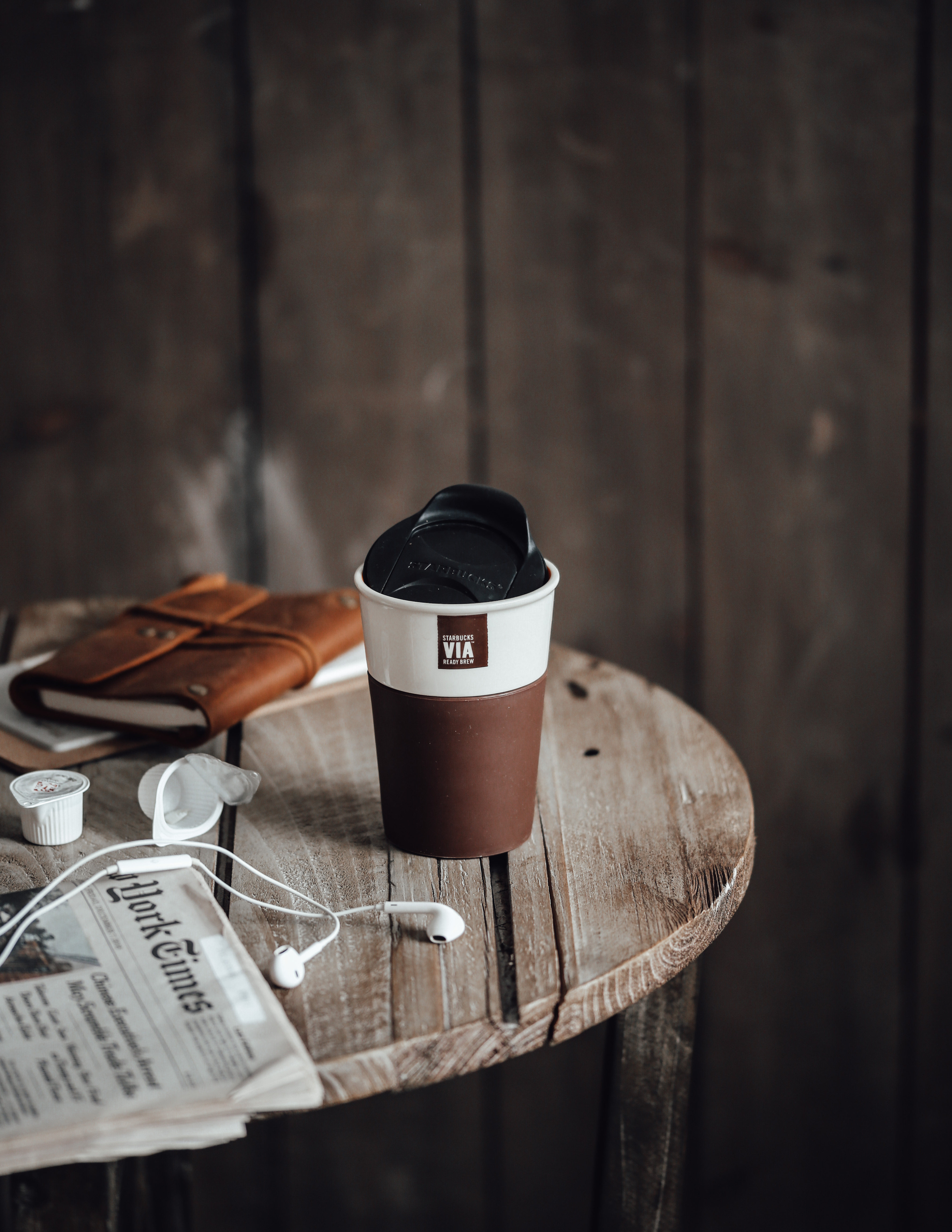 Light-coloured round table dark round table (clearing house not to be changed)