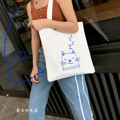 White lazy sail cloth bag female Japanese large capacity print art wild college student shoulder bag canvas bag
