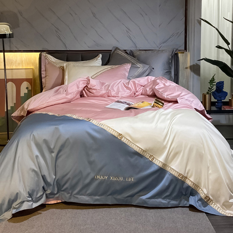 MEIMIU designer paragraph 120 pure cotton embroidered four pieces of covered color splicing quilt cover all-cotton bed with supplies 140