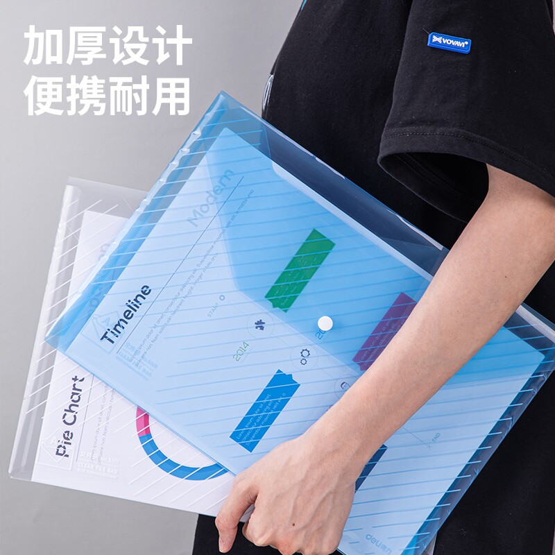 Xinjiang Deli button with creative simple transparent A4 file plastic bag office ticket bag