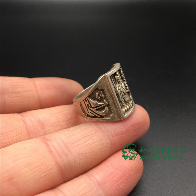 New White Copper Silver Plated Miao Silver Tibetan Silver Guanyin Entry and Exit Peace Ring Vintage Unisex Accessory Ring Ring