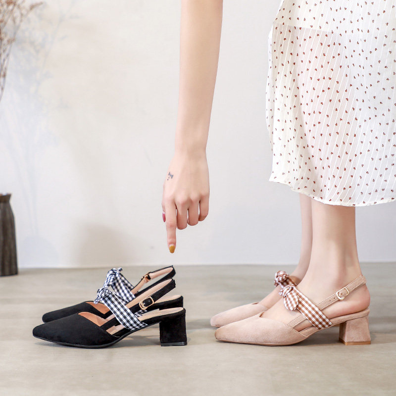 Bow shallow thick heel buckle color matching