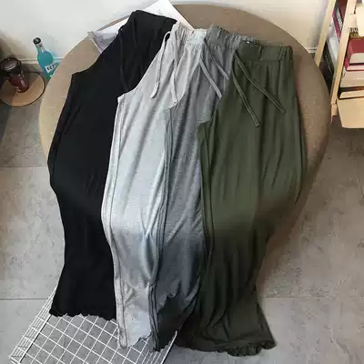 Summer new high-waisted black modal lace wide-leg pants female Korean loose straight long pants draped all-match