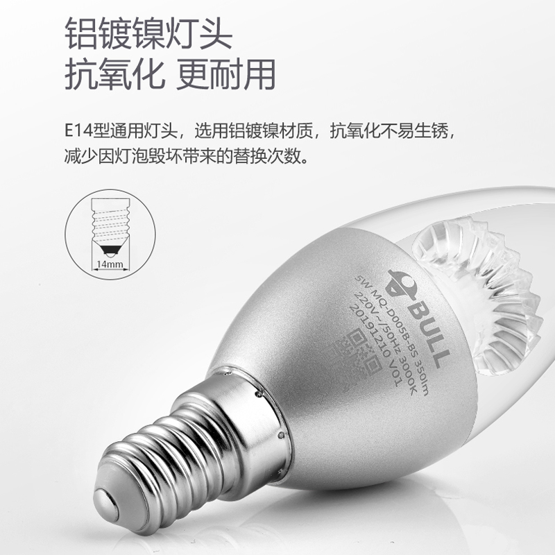 Bull LED light bulb lamp E14 small screw candle lamp 3W5W tip bubble home warm white light source lamp high light