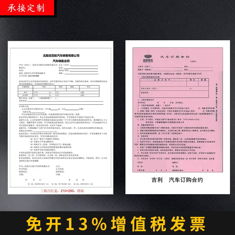 Geely material two triples 50g carbon-free copy paper 210*290㎜ customizable car 4S shop Jusheng