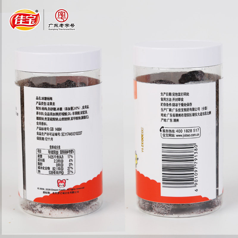 Jiabao 9-made ice sugar poplar plum dry 168g * 2 cans of candied fruit and sweet talk plum sour plum canned casual snacks