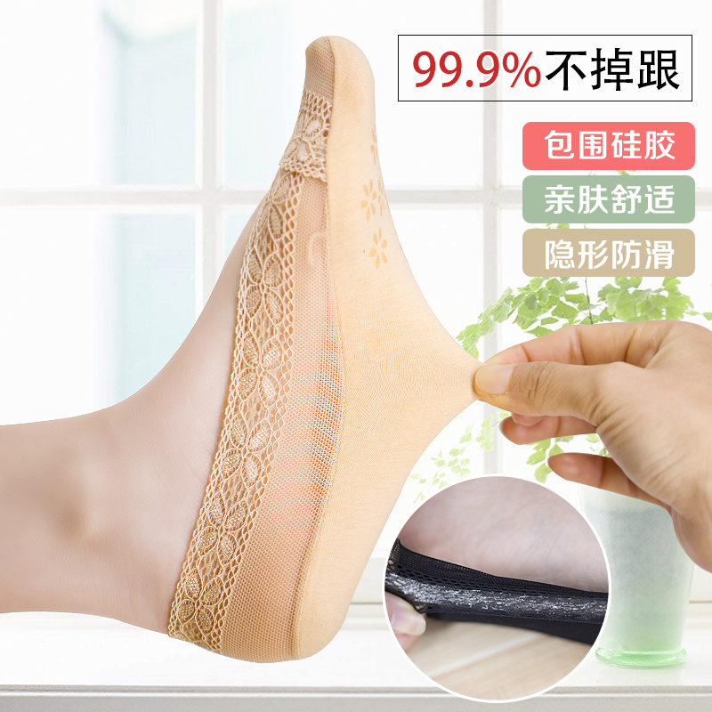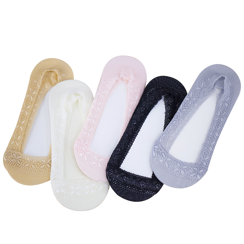 Socks thin female stockings anti-skating socks invisible shallow lace mesh socks short pure cotton ultra-thin summer