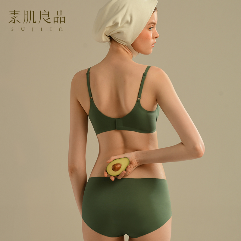 Plain muscle products no traceless underwire ladies underwear set gathered adjustment type briefs sexy cute bra