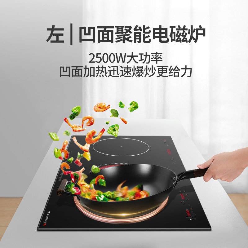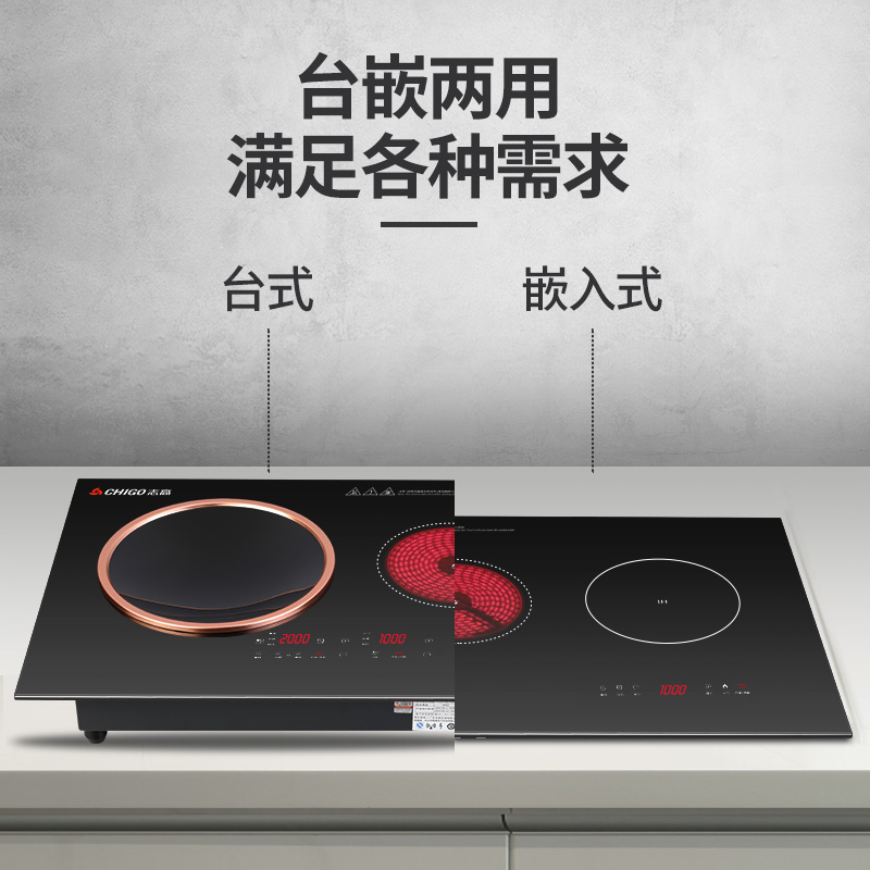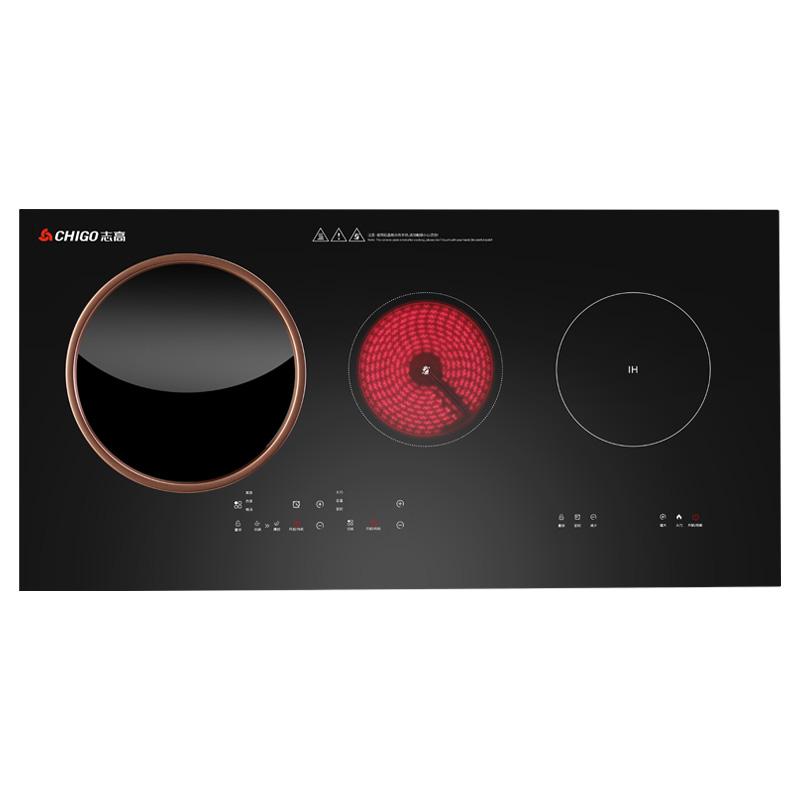 Zhigao induction stove Double-mouth gas stove Home Embedded high-power induction cookware table concave three-head electric frying stove