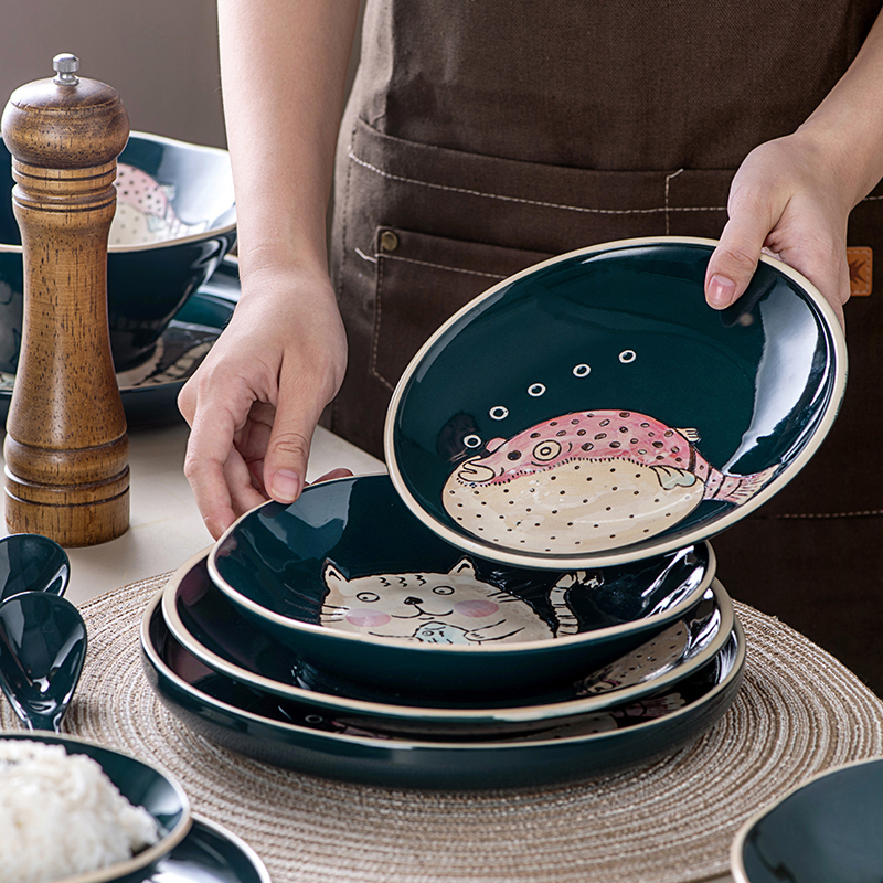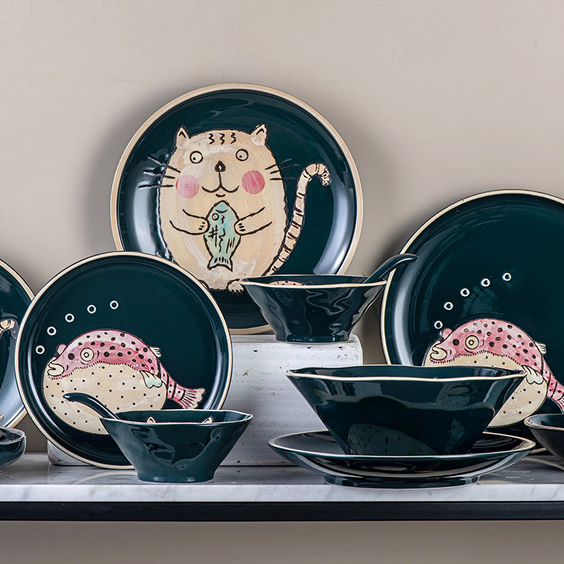Fat River Dolphin -8 Inch Large Bowl Fat River Dolphin Steak Dolphin Carp 2 People Apply Brocade Carp Steak Dress Small Soup Spoon (4 Only) Brocade Carp -9 5 Inches High Side Pan Fat River Dolphin 2 People Fit