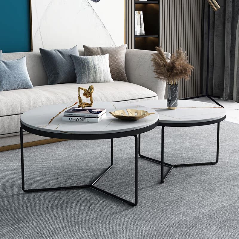 Nordic style light luxury marble coffee table simple small apartment side table living room slate round combination net red small coffee table