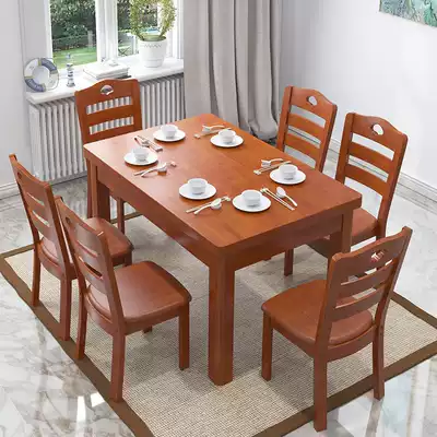 Solid wood dining table and chair combination 4 people 6 people rectangular small apartment Simple modern household dining table square table Western table